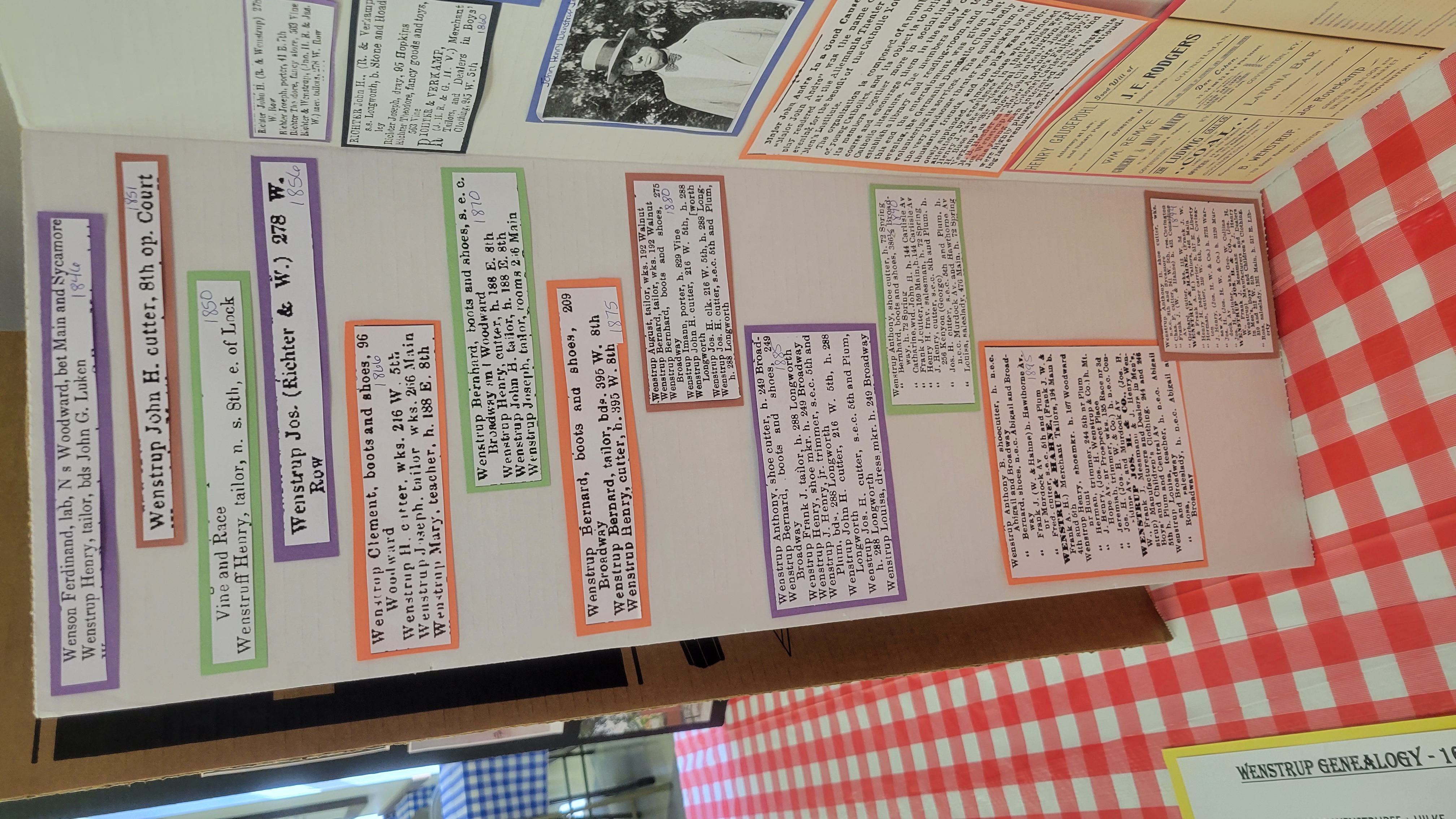 Posters of our family's tailoring businesses and other notable history: